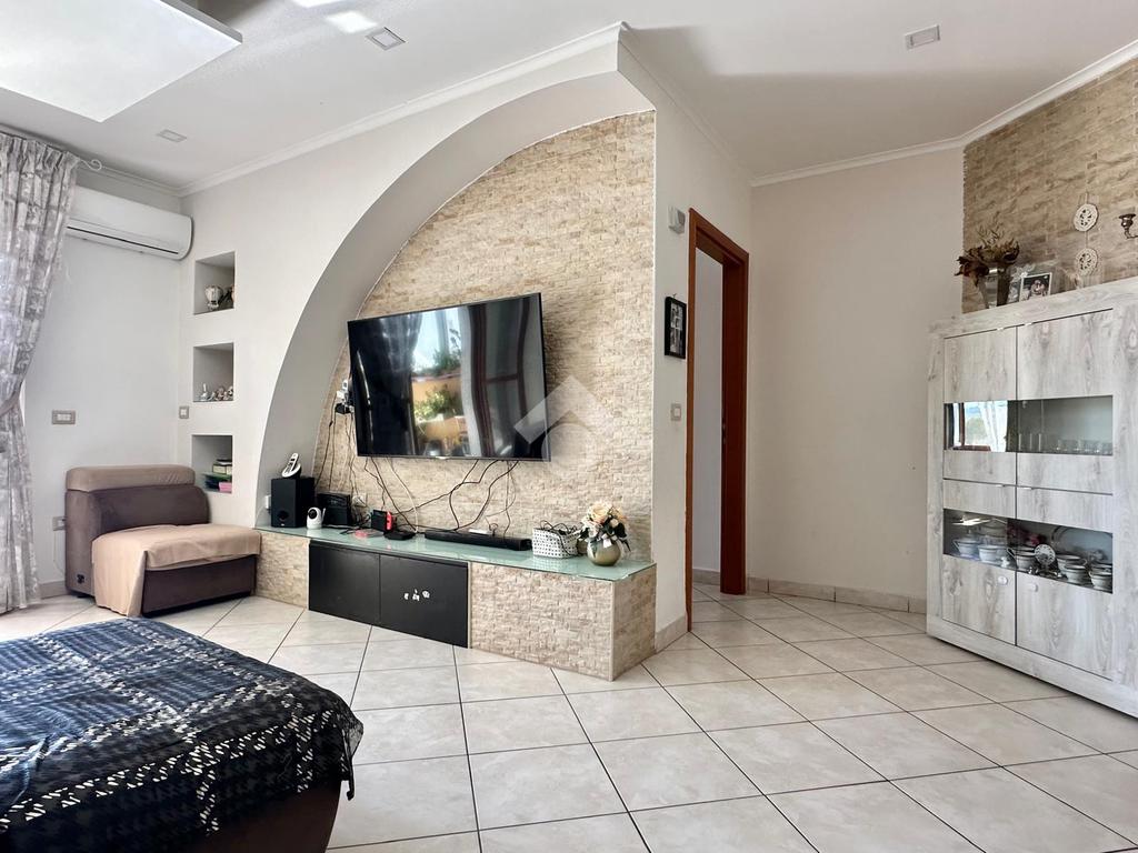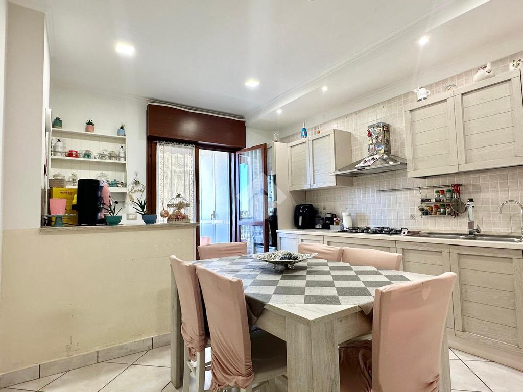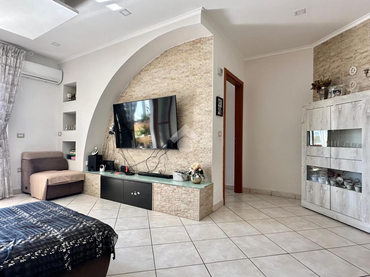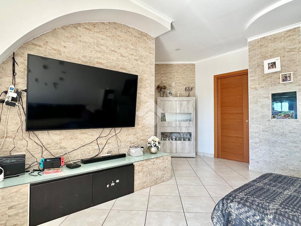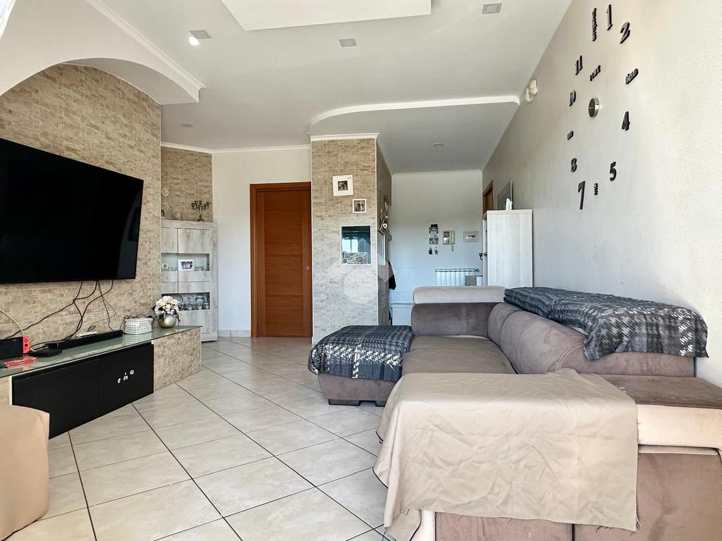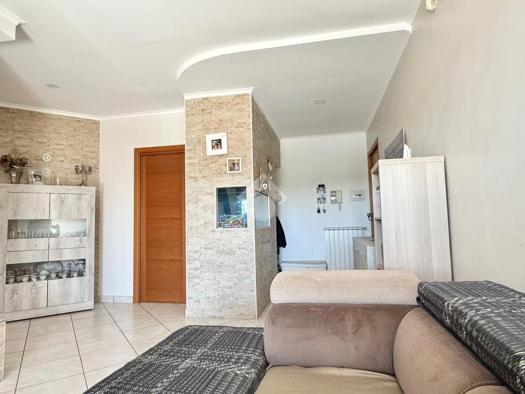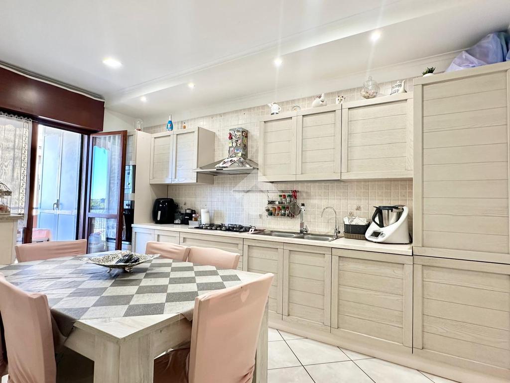 L'immobile si apre su un ampio salone d’ingresso, proseguendo con una cucina abitabile servita da un balcone verandato con comodo ripostiglio adibito a lavanderia.